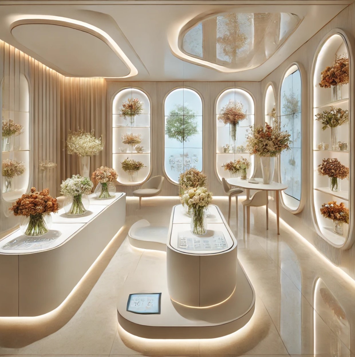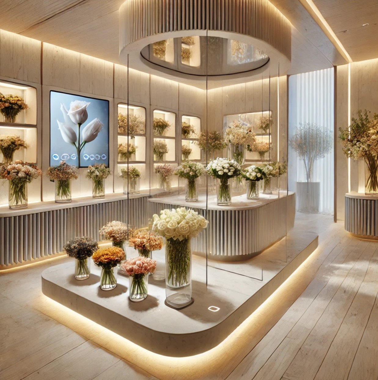 בזמנים שבהם חלק ניכר מהמסחר מתרחש באינטרנט, עיצוב חנויות פיזיות הופך להיות מרכיב חשוב ביצירת חוויית קנייה שתעודד את הלקוחות לבקר במקום עצמו. בחנות פרחים, המטרה היא ליצור תחושה של קירבה לטבע, תוך שילוב חדשנות טכנולוגית שתעשיר את החוויה.